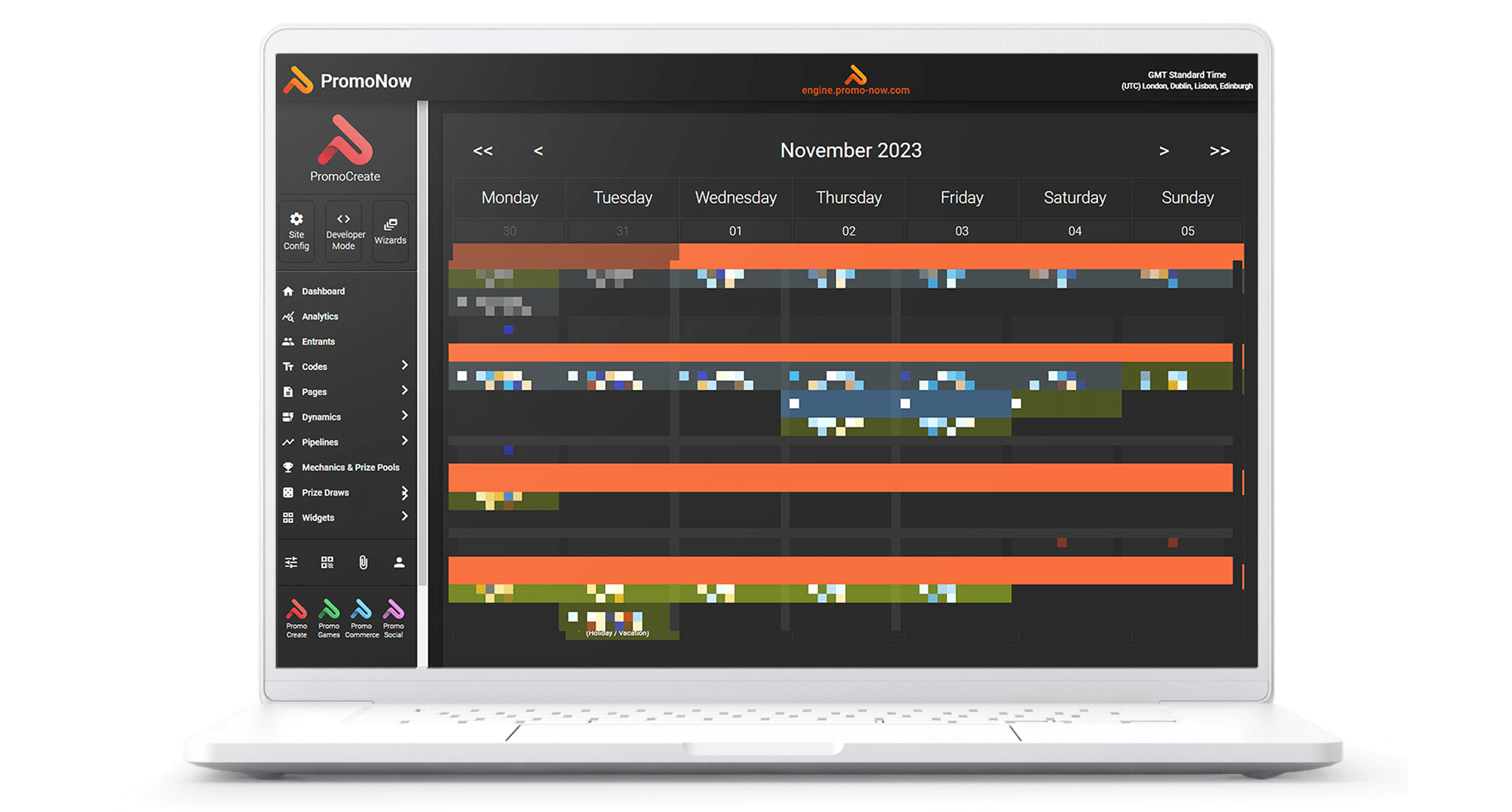 It's where promotion projects are created and configured. Use the CMS editor to create landing pages, entry forms and validate participations. Build prize draws, instant win mechanics and more. See real-time analytics, campaign timelines, use automation and fraud prevention.